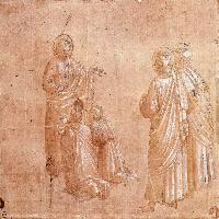 Technique: Pen and brown ink and purple wash on vellum, 197 x 179 mm