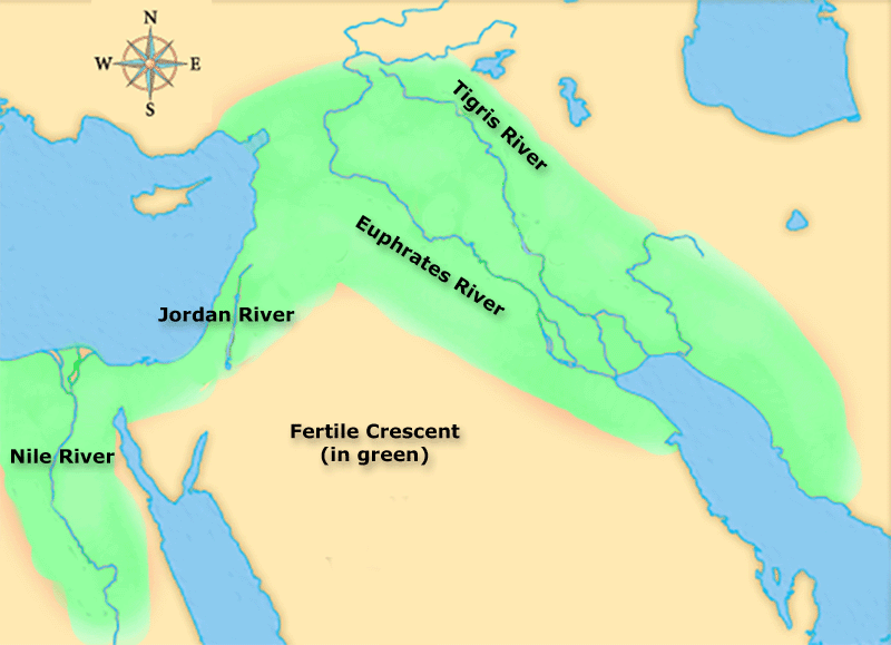 On the eastern shores of the Mediterranean Sea, Israel existed in the region known as the "Levant." This word derives from the French word lever, which means "to rise," as in sunrise, (the east). Historically, the Levant ranged from modern-day Egypt to Turkey. The Southern Levant includes the modern-day states of Israel, Palestine, Jordan, and southern parts of Syria and Lebanon.Fertile Crescent Located within the ancient middle east was a crescent-shaped region ("fertile crescent"), that was home to some of the earliest human civilizations. This region was fertile because it had water sources that were essential for the rise of civilization, ( i.e. the Tigris, Euphrates, Jordan, and Nile rivers).