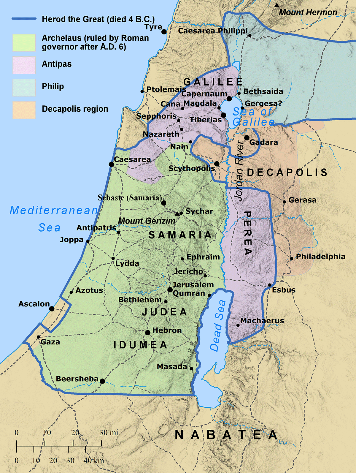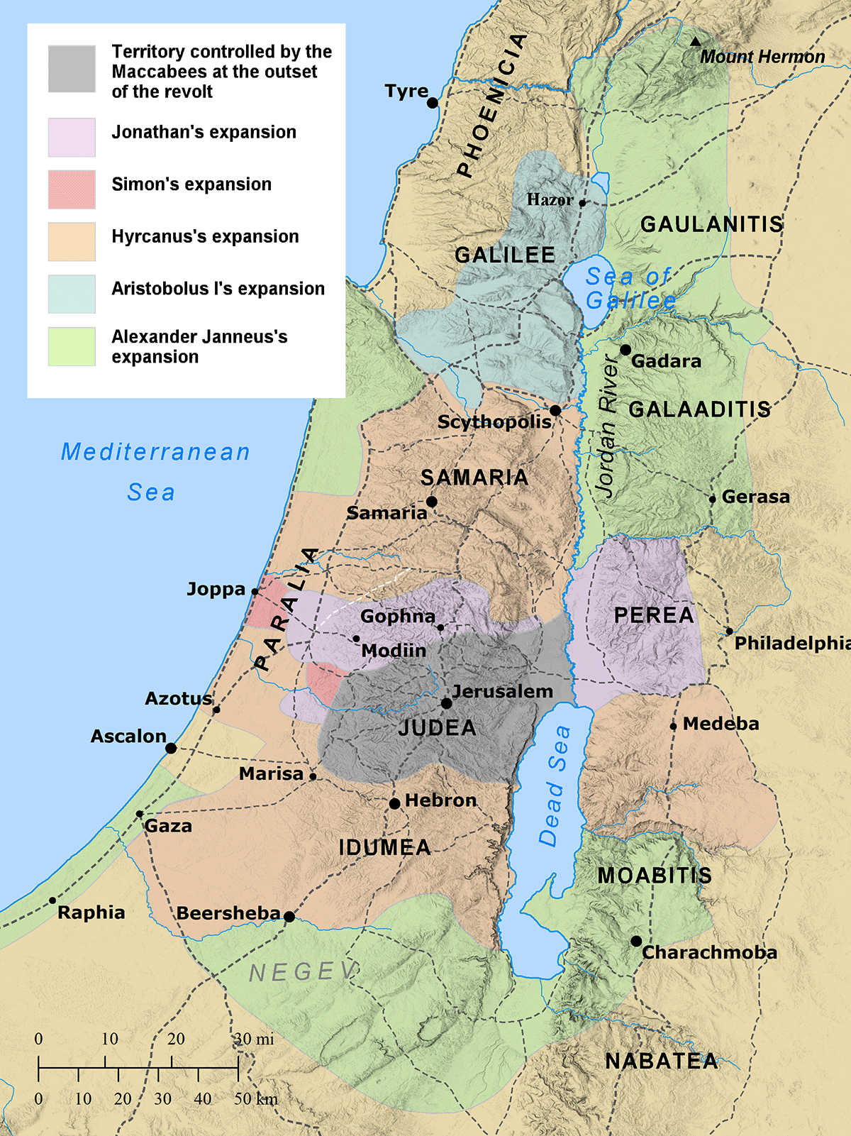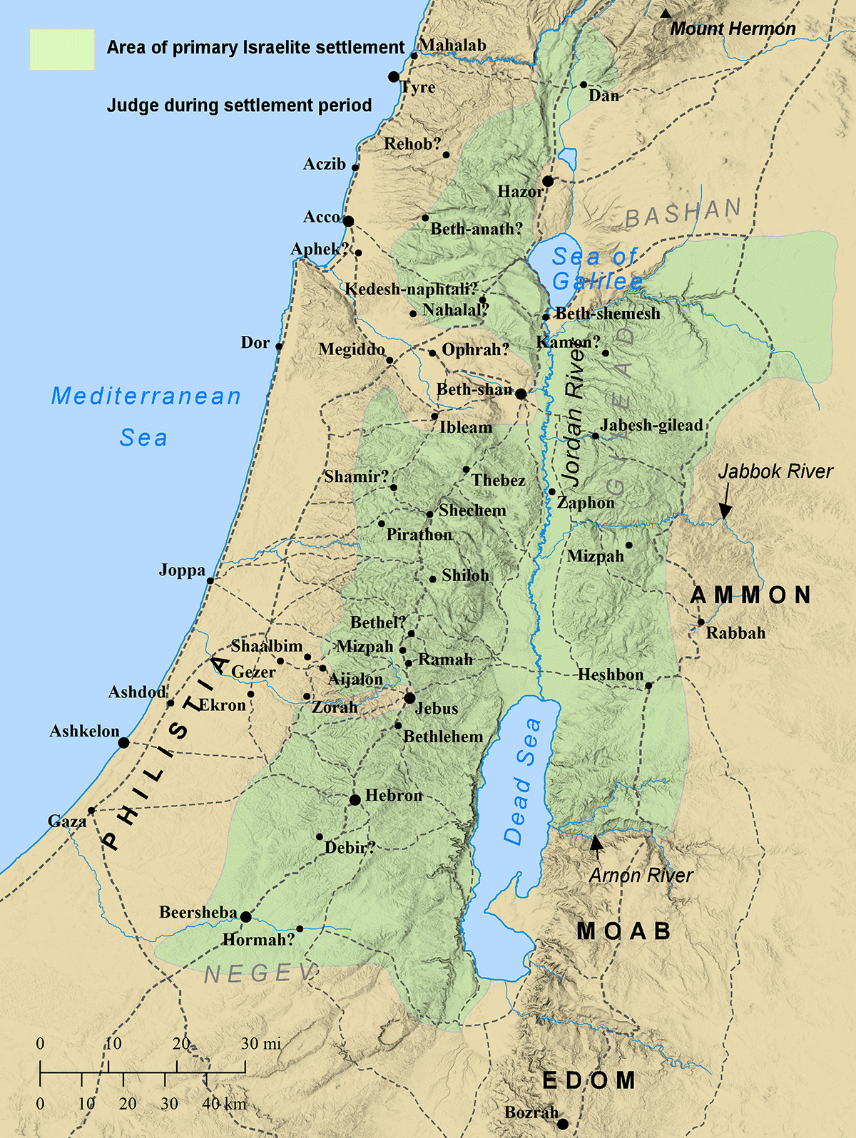 Locations of pertinence changed over the centuries as the people and events affecting Israel came and went. The major periods in the history are here divided into six spans of time. Each of these is illustrated with a clickable map in the side column.