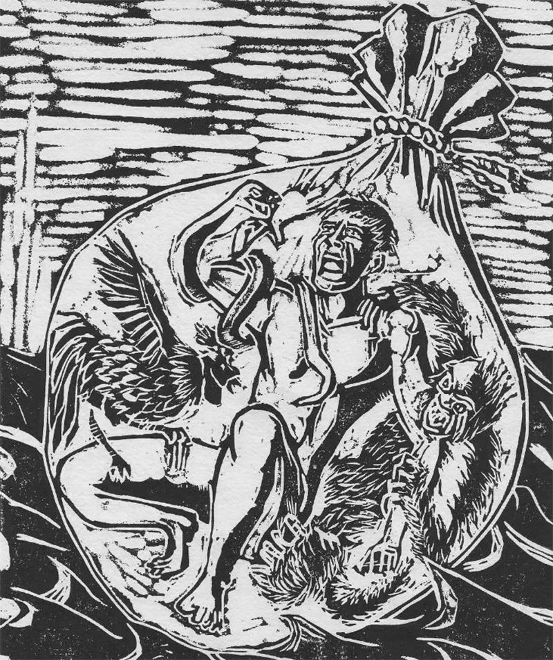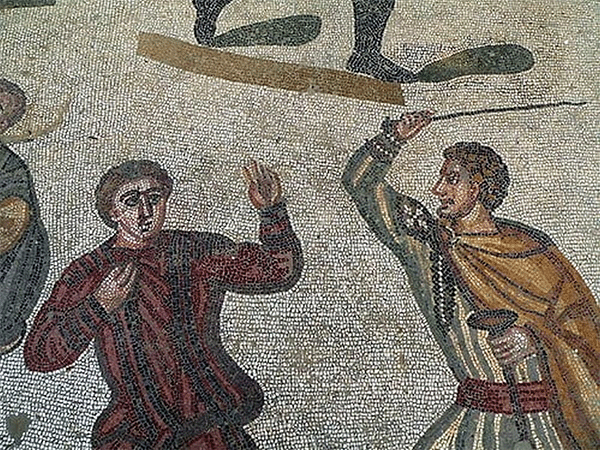 Punishments for crimes were generally carried out rapidly. For minor offenses, punishment include a severe beating, being flogged or branded on the forehead. More severe crimes were punished by putting out the eyes, ripping out the tongue, or cutting off ears. The death penalty included being buried alive, impaling and, of course, crucifixion. The Romans did not hesitate to torture before putting someone to death. One such punishment was sewing a bound prisoner in a heavy sack with a snake, a rooster, a monkey and a dog, then throwing the sack into the river. This punishment was usually reserved for patricide, or a son who killed his father. (Getting the Sack)